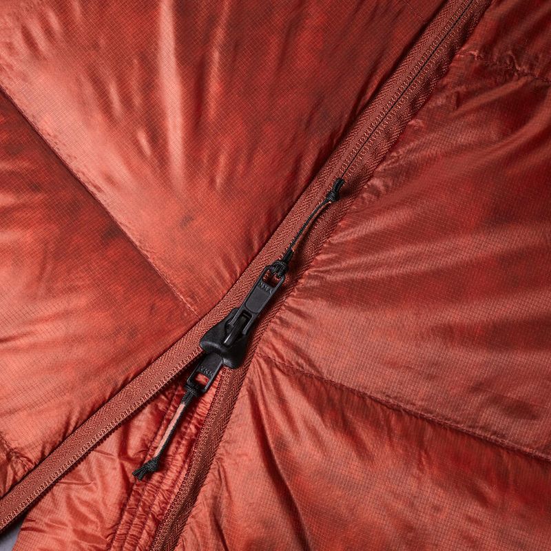 Um capuz de formato anatômico com cordão e uma aba anti-frio ao longo do zíper evitam a perda de calor. Um zíper YKK de duas vias com sistema antiperfuração garante ótima ventilação. Um bolso interno com zíper é ideal para armazenar itens pequenos. Há duas alças na parte inferior da bolsa do saco de dormir para que você possa pendurá-la para arejá-la ou secá-la.É fornecida uma bolsa de armazenamento de tecido perfurado.