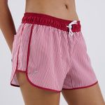 Short Feminino de Surf 100 Tribord Listrado Vermelho
