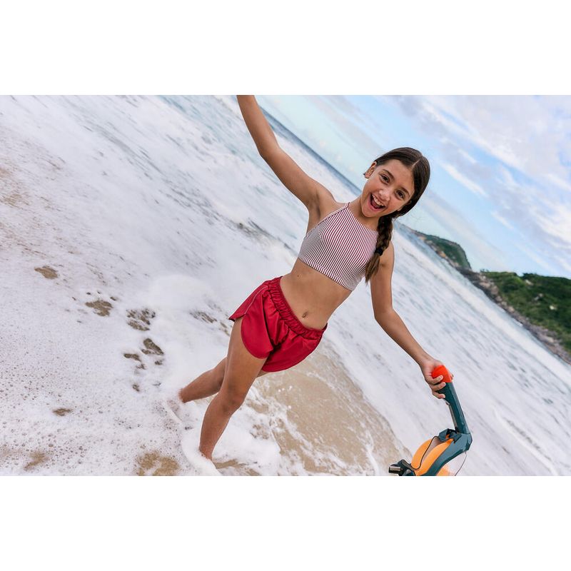 Shorts projetados para jovens surfistas iniciantes.Feitos com tecido leve e de secagem rápida e um cós elástico com ajuste regulável, eles oferecem conforto Seu tecido contém 7% de elastano e tem um corte mais curto, o que ajuda na liberdade de movimentos.O pequeno bolso interno permite que você guarde um pedaço de cera ou pequenos itens para uso casual.