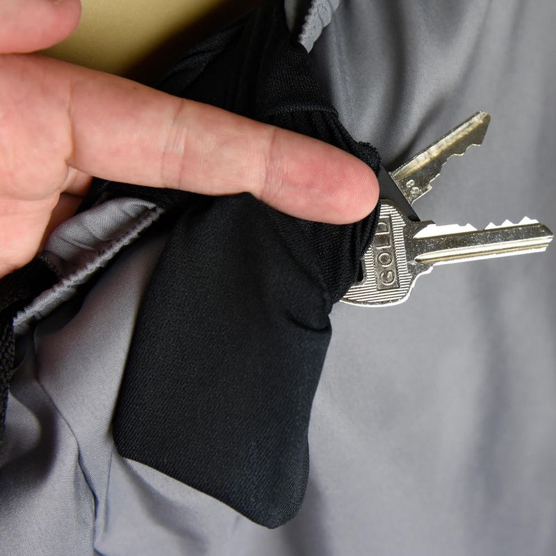 Pequeno bolso interno na região da cintura para chaves.