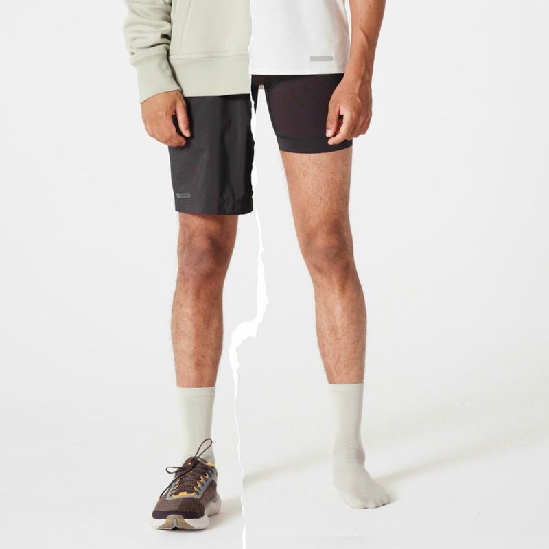 Shorts 2 em 1 Masculino de Corrida Run 500 Dry Kalenji Preto