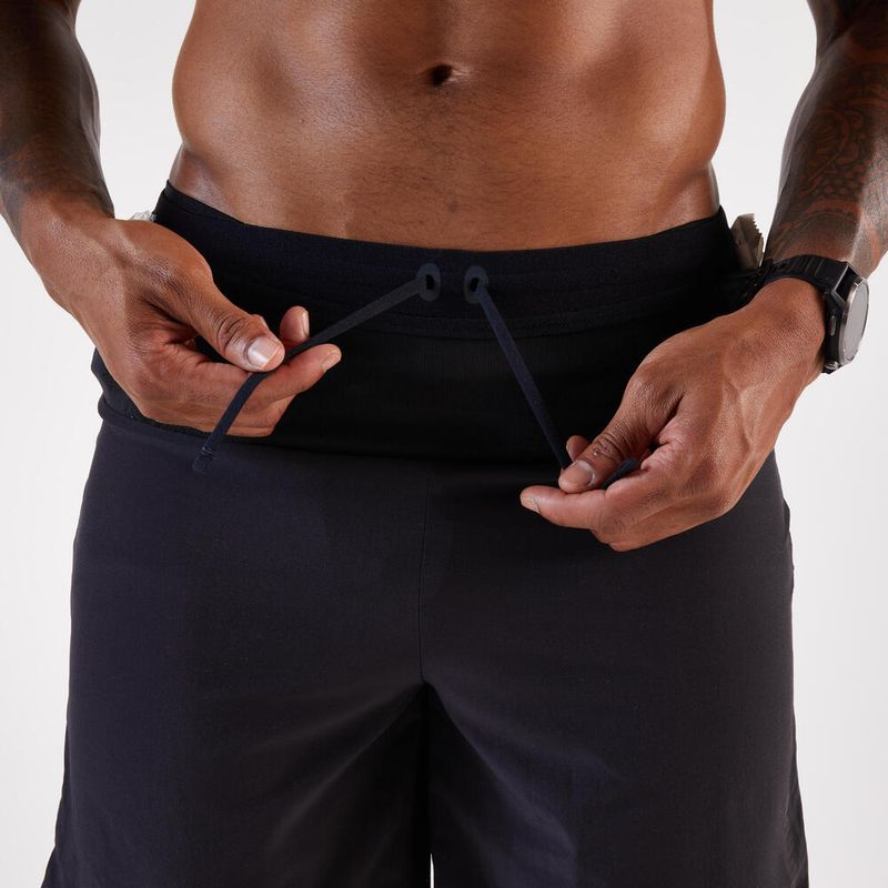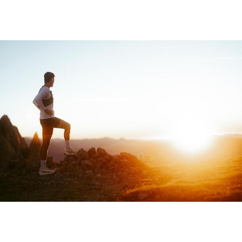 Para um objetivo mais longo, o transporte, a hidratação e a nutrição tornam-se prioritários. Com 5 bolsos, poderá transportar uma garrafa de 500 ml, o seu celular, as chaves e 4 géis ou barras proteína. Tudo isto para uma melhor gestão da corrida, graças a bolsos minuciosamente colocados e que oferecem o melhor apoio possível.