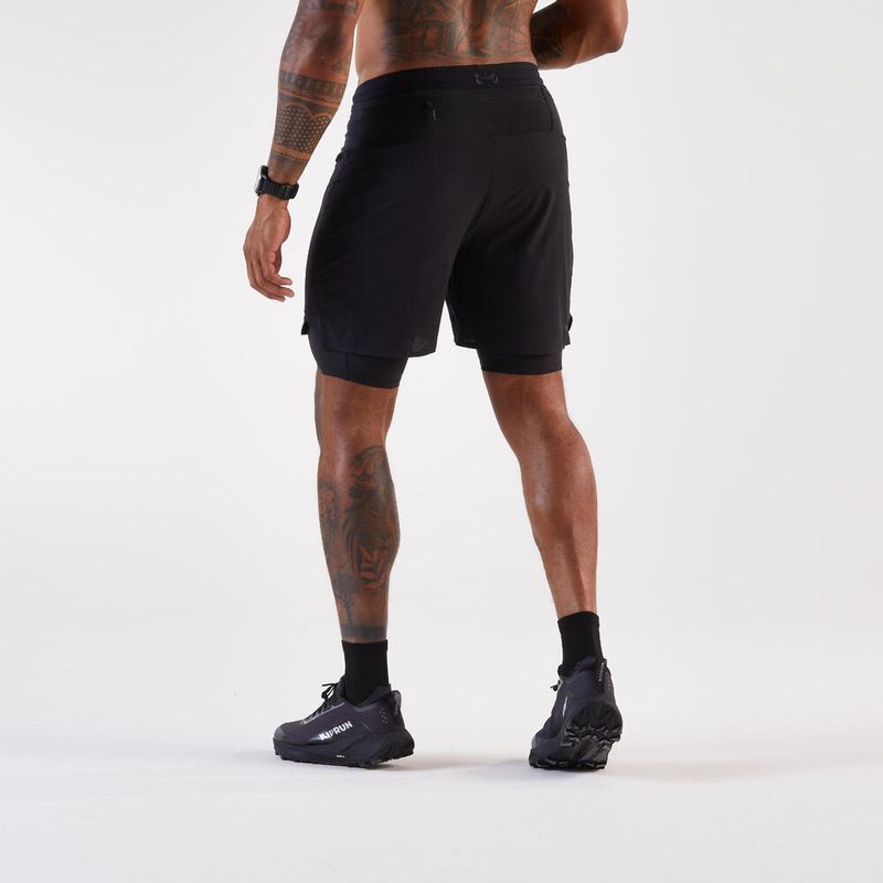 Estes calções 2 em 1 para corrida ou trail running têm a particularidade de serem concebidos com componentes diferentes ? a? frente e atrás para garantir uma melhor gestão da transpiração. Os diferentes materiais oferecem a melhor combinação de liberdade de movimentos e gestão da transpiração, para que possa vencer as distâncias.