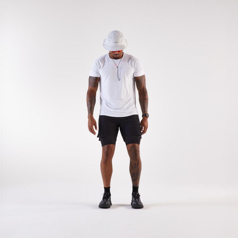 Estes calções 2 em 1 para corrida ou trail running têm a particularidade de serem concebidos com componentes diferentes ? a? frente e atrás para garantir uma melhor gestão da transpiração. Os diferentes materiais oferecem a melhor combinação de liberdade de movimentos e gestão da transpiração, para que possa vencer as distâncias.