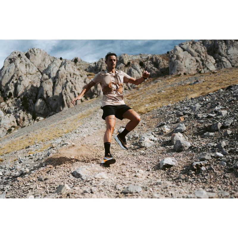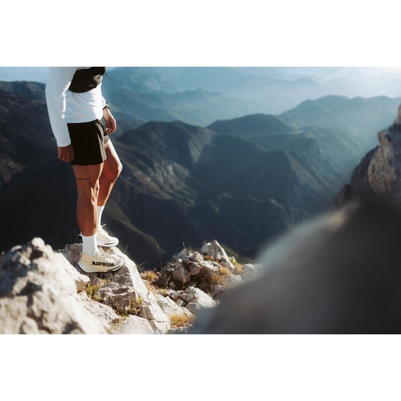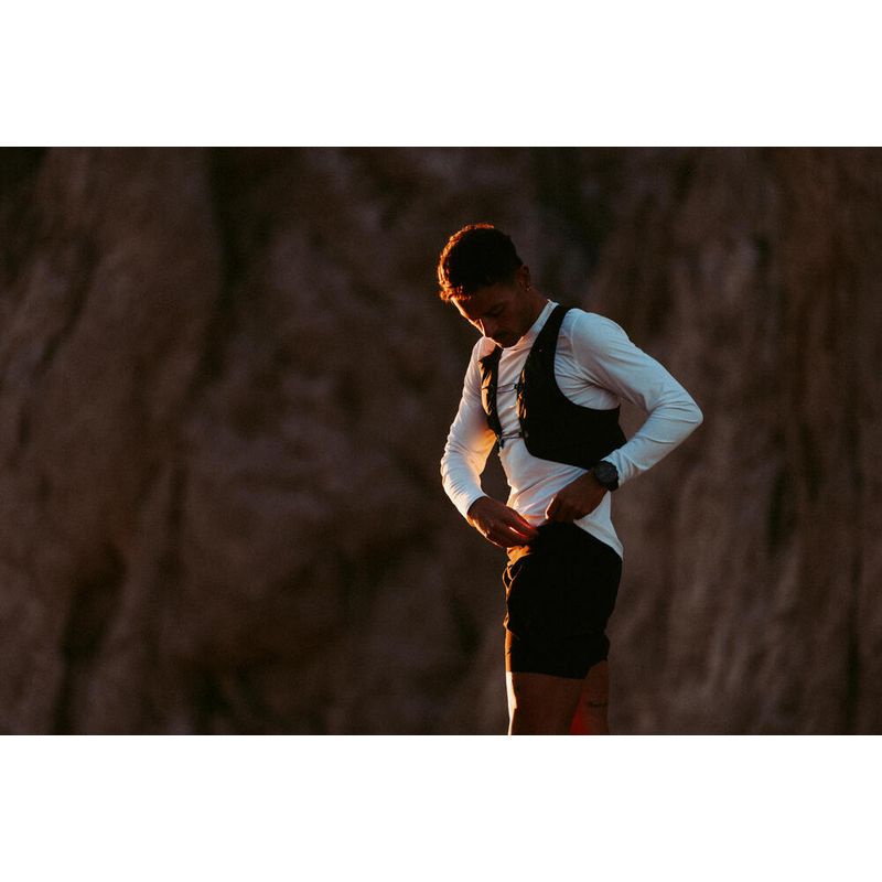 Para um objetivo mais longo, o transporte, a hidratação e a nutrição tornam-se prioritários. Com 5 bolsos, poderá transportar uma garrafa de 500 ml, o seu celular, as chaves e 4 géis ou barras proteína. Tudo isto para uma melhor gestão da corrida, graças a bolsos minuciosamente colocados e que oferecem o melhor apoio possível.