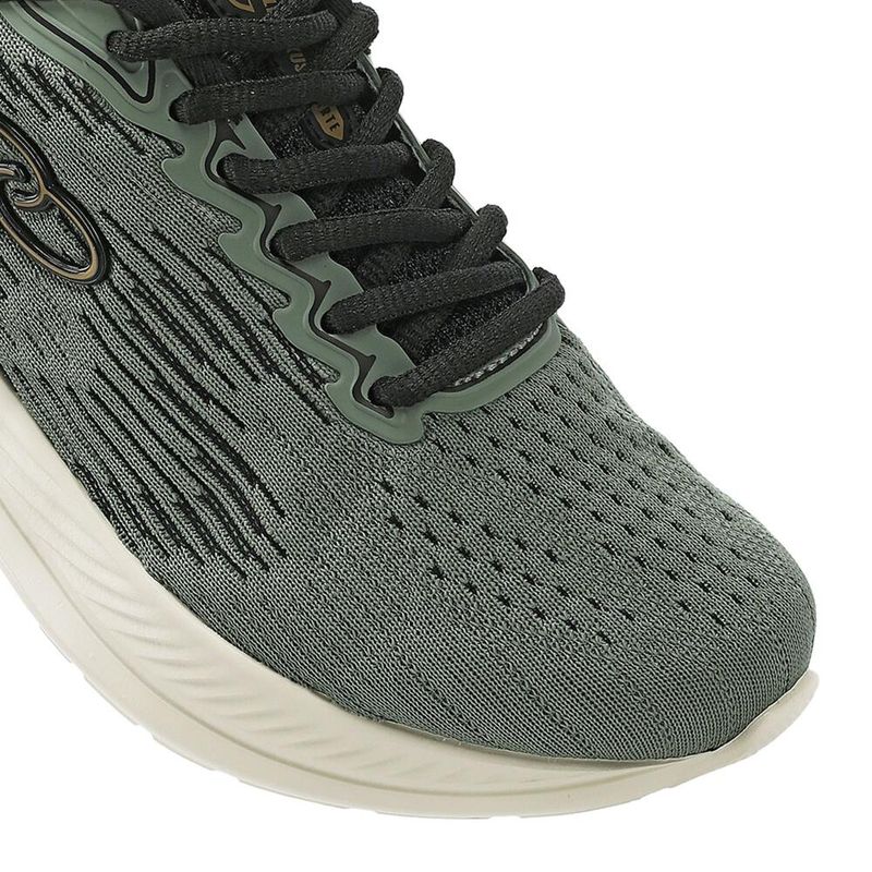 Gáspea confeccionada com tecnologia inovadora em double jacquard, oferecendo alta flexibilidade e respirabilidade.