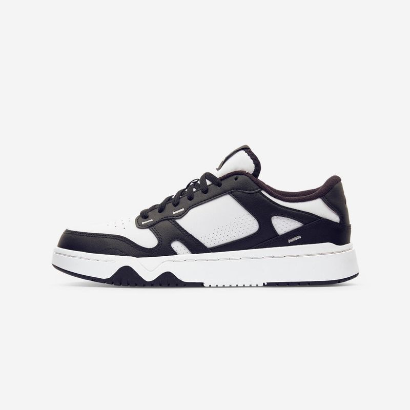 A parte superior em couro torna o calçado muito resistente.