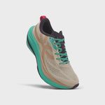 O Corre Turbo possui forro em tecido poliéster com espuma e uma lingueta de dupla frontura, também com espuma, que abraçam o pé suavemente. O fechamento conta com atacador serrilhado, projetado para evitar que o cadarço se solte durante o exercício, proporcionando um ajuste preciso e seguro.