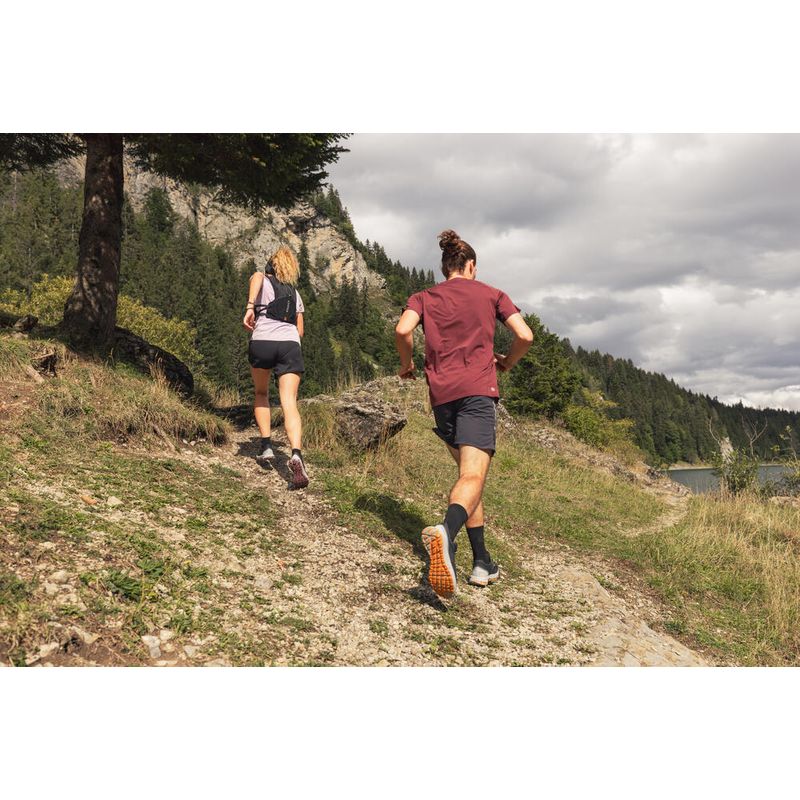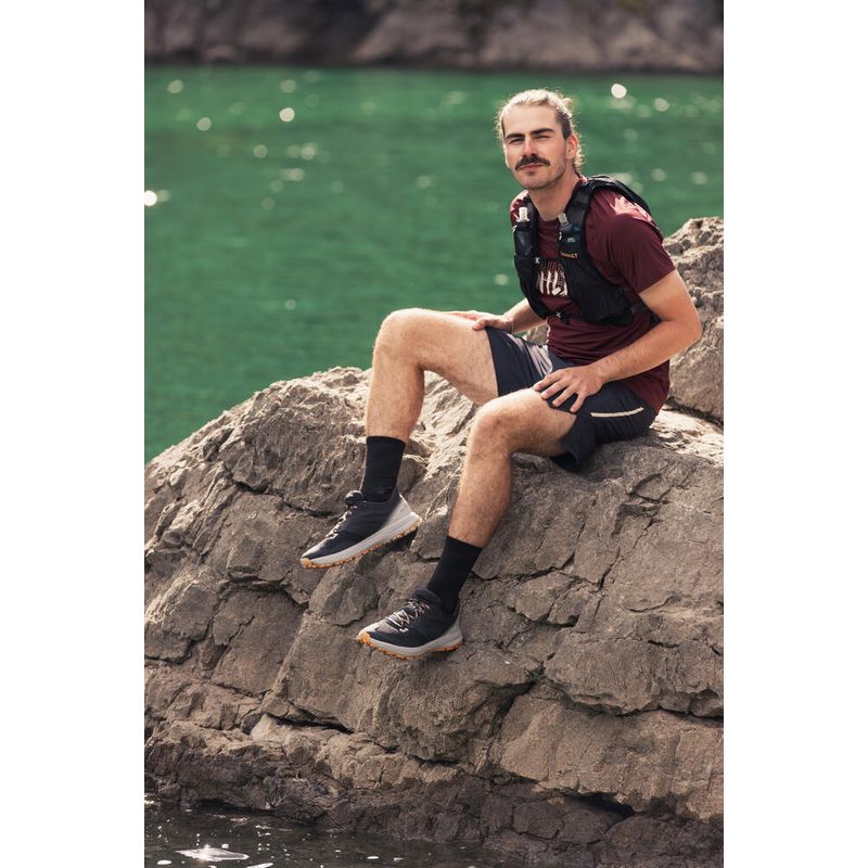 Tênis leve com 300 g no tamanho 42?Recomendado para corredores de trilha de até 90 kg.????Graças aos seus pitões de 4 mm, a borracha da sola proporciona um compromisso ideal entre aderência e aderência (borracha nova e design adaptado) e permite versatilidade tanto em trilhas quanto em trechos de estrada, mantendo-se confortável.?? Protetores de pedra na frente e atrás para proteger você do terreno natural.