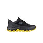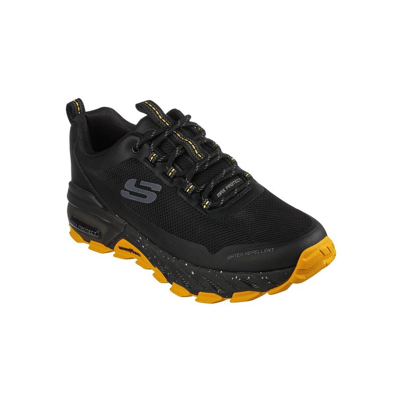 Este modelo para todo o terreno com cordões tem uma capa de couro e um pouco repelente à água, planta Skechers Air-Cooled Memory Foam® e uma suela externa duradera de goma Goodyear® com base antideslizante.