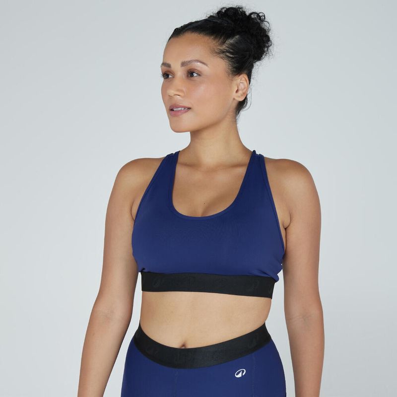 Os tops da Decathlon são projetados por nossa equipe esportiva para maximizar o conforto e evitar problemas de saúde. Para evitar o risco de ferimentos e de compressão dos linfonodos, eles não contêm aro. Não há costuras sobre os mamilos para reduzir o risco de fricção. Os tecidos que absorvem a transpiração o mantêm o mais confortável possível e reduzem significativamente o risco de irritação da pele.