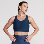 A originalidade desse modelo é que ele combina os benefícios de sustentação com um recorte frontal em tecido que permite a transpiração.A primeira camada do top esportivo é coberta por uma segunda camada de tecido para criar uma aparência de top cortado.Combine com leggings para criar um visual moderno e esportivo.
