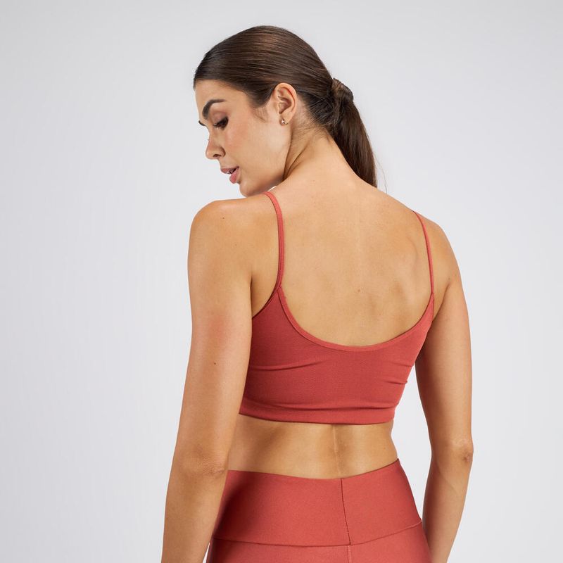 Desenvolvido para a prática de treinamento cardiorrespiratório. Top em tecido elástico e respirável e tecido jacquard para ajudar a manter a pele seca e fresca.Apresenta alças finas e delicadas, proporcionando total liberdade de movimento em todas as direções.