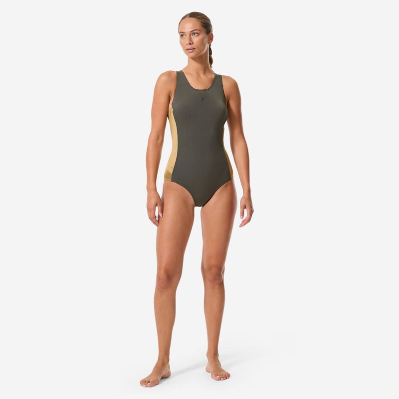 Traje de banho feminino de uma peça, Kelly kaki gold